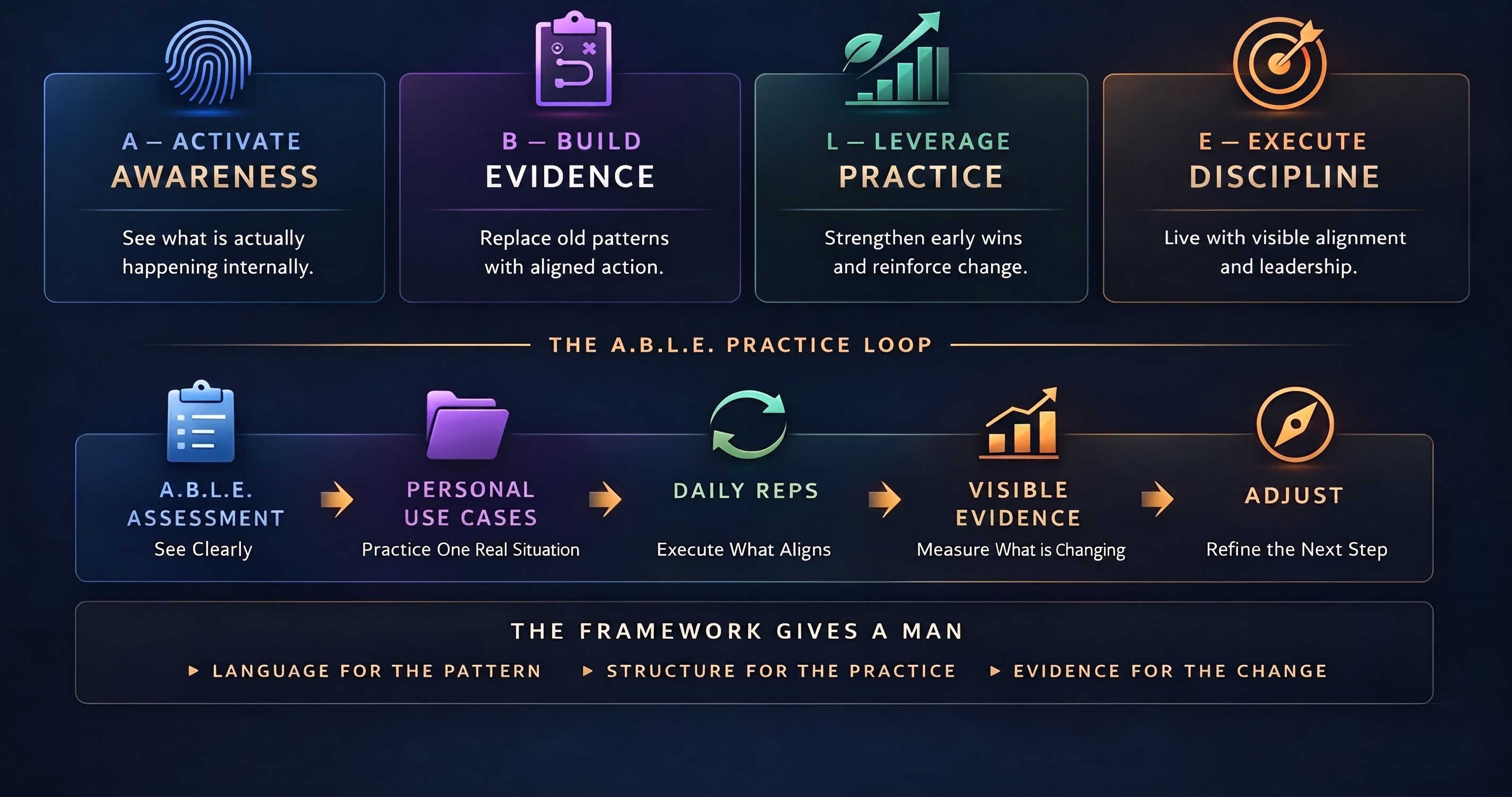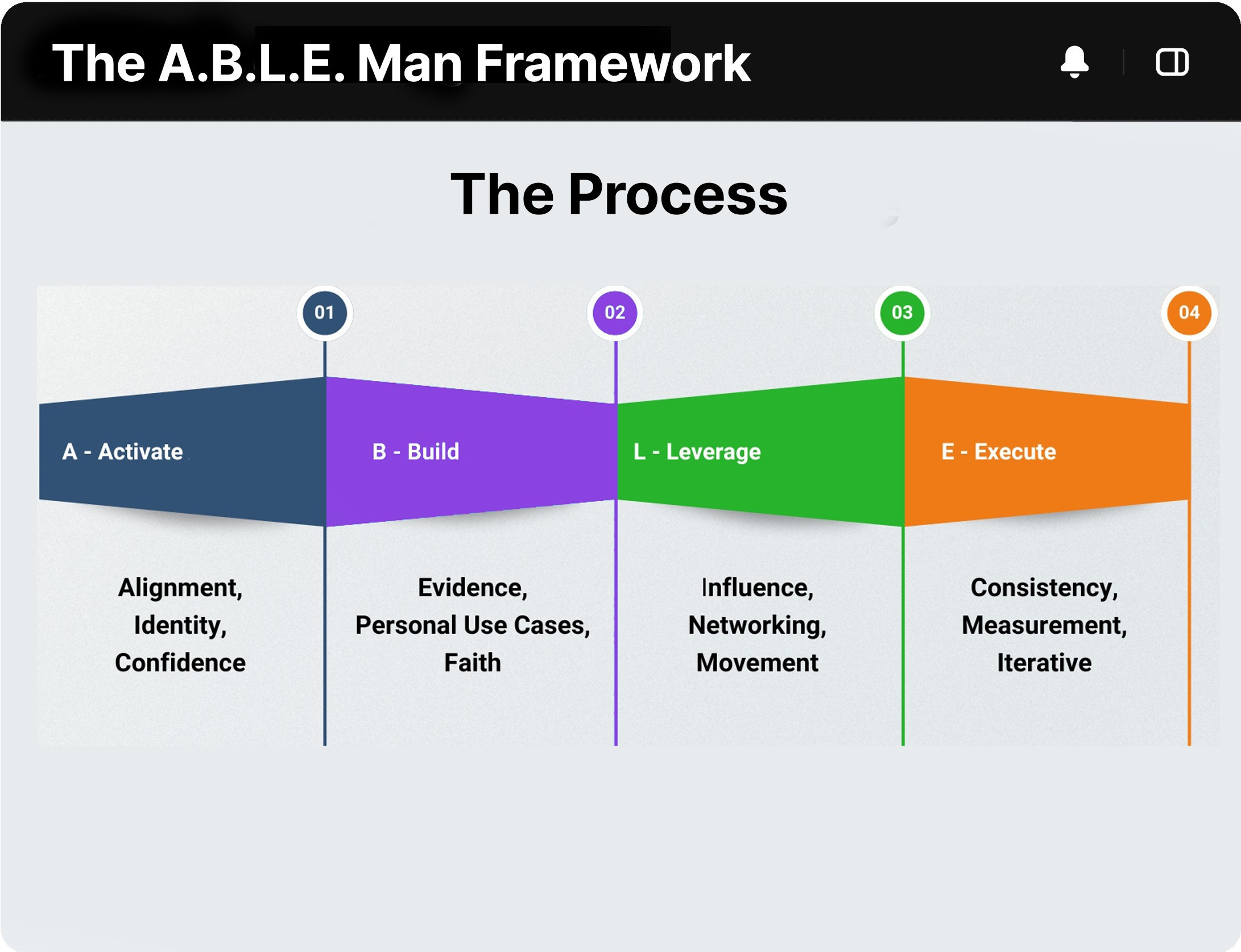 A.B.L.E. helps men get aligned, build real evidence, and execute on what matters.